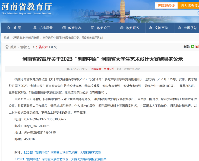 2023“创响中原”河南省大学生艺术设计大赛结果公示