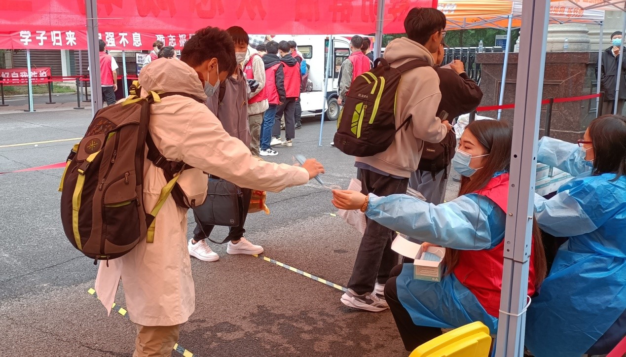 新生返校当天清晨,志愿者们就早早到达自己的岗位,他们着装整齐,意气风发,对于各自工作内容都做到了胸有成竹。清早八时,新生返校通道正式开启。他们同值守老师一起,熟练地查验行程码、健康码、核算检测证明等材料,并配合校卫队完成交通疏导、行李消杀等工作。